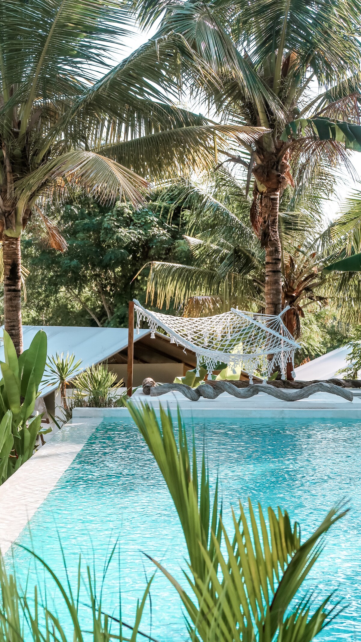Maravillosa y cómoda experiencia de tienda de campaña con desayuno grande gratuito. La tienda de campaña se puede poner en la playa con arena o cerca de la piscina con césped. 4 tipos de tienda: 2+1 tienda de campaña y 4+2, tienda de campaña 6+2, tienda de campaña 10+4. Ducha con agua fría y caliente. Disfruta del amanecer y en nuestro puente Sky. Siente el sonido del océano... Incluido: 1. Matras 60 x 200 cm. 2. Almohada + funda de almohada. 3. Sábana. 4. Toalla 5. Silla y mesa de jardín. 6. Desayuno. 7. Coco fresco gratis. 8. Enchufe eléctrico en la glorieta. 9. Piscina 10. Wifi