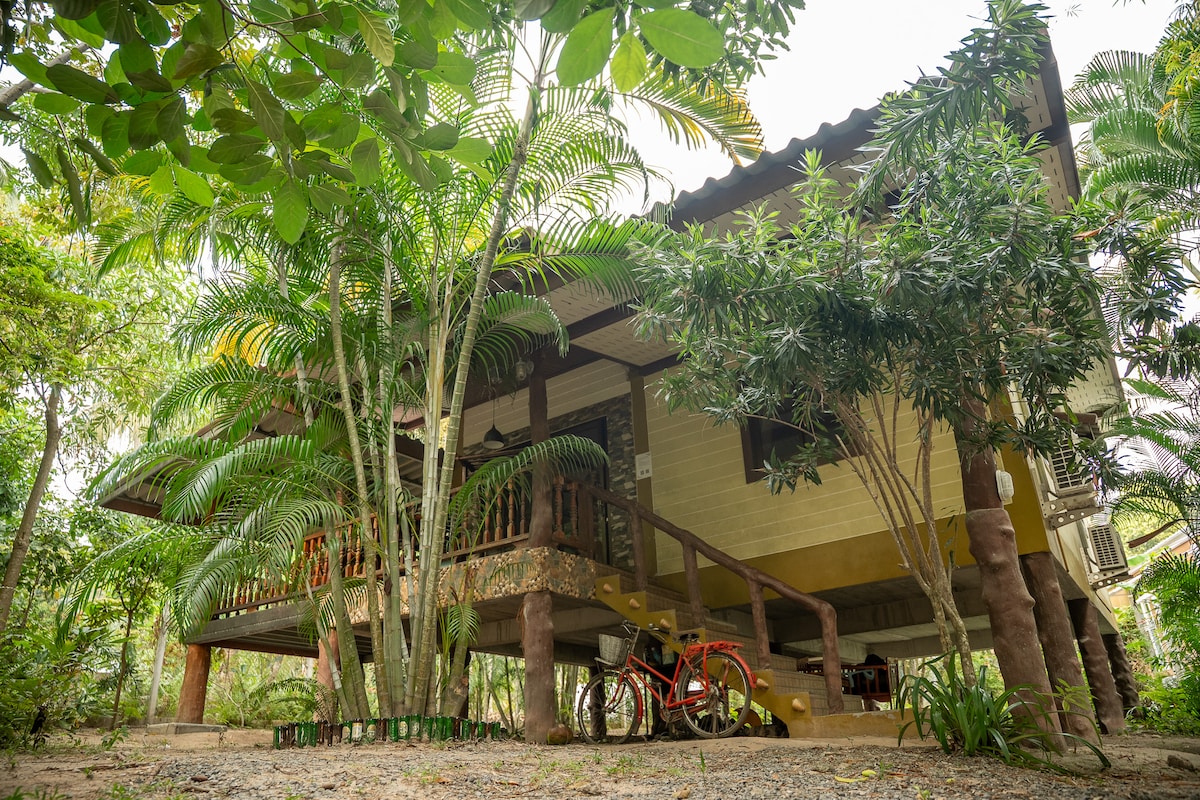 Es una casa grande con 2 balcones. Alójate en un oasis aislado y sereno en medio del bullicioso centro de Tong Sala. La proximidad tanto a la playa como a un gran supermercado añade comodidad, mientras que la privacidad y tranquilidad de estar enclavado junto al lago crean una experiencia de vida verdaderamente única. Es una mezcla perfecta de comodidad y serenidad. Despiértate en el cómodo dormitorio de artistas con vistas al lago. Relájate en la terraza, observando cómo los peces nadan y los varanos pasan deslizándose. Tu refugio perfecto te espera.