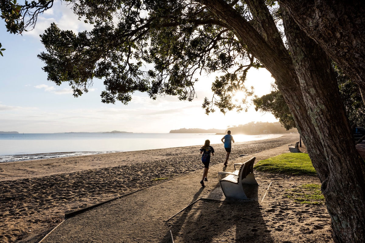 Central Takapuna, a pie de la playa, cafeterías, restaurantes