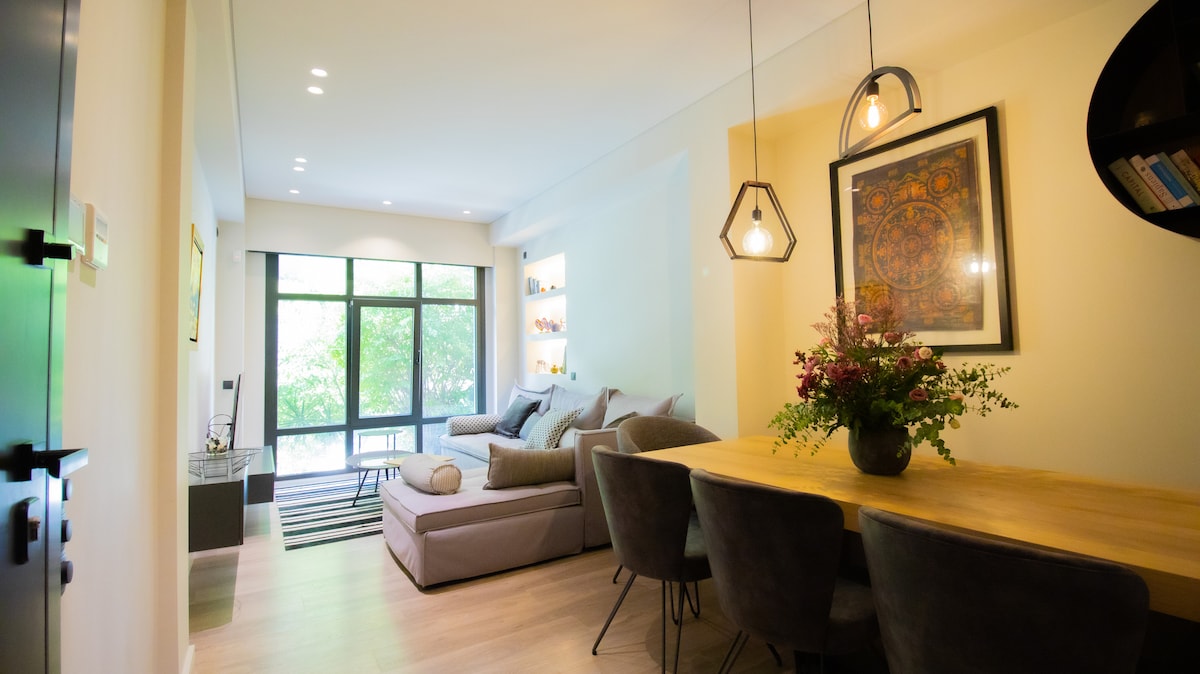 Elegante, soleado y nuevo apartamento de 2 dormitorios en el centro de Atenas.