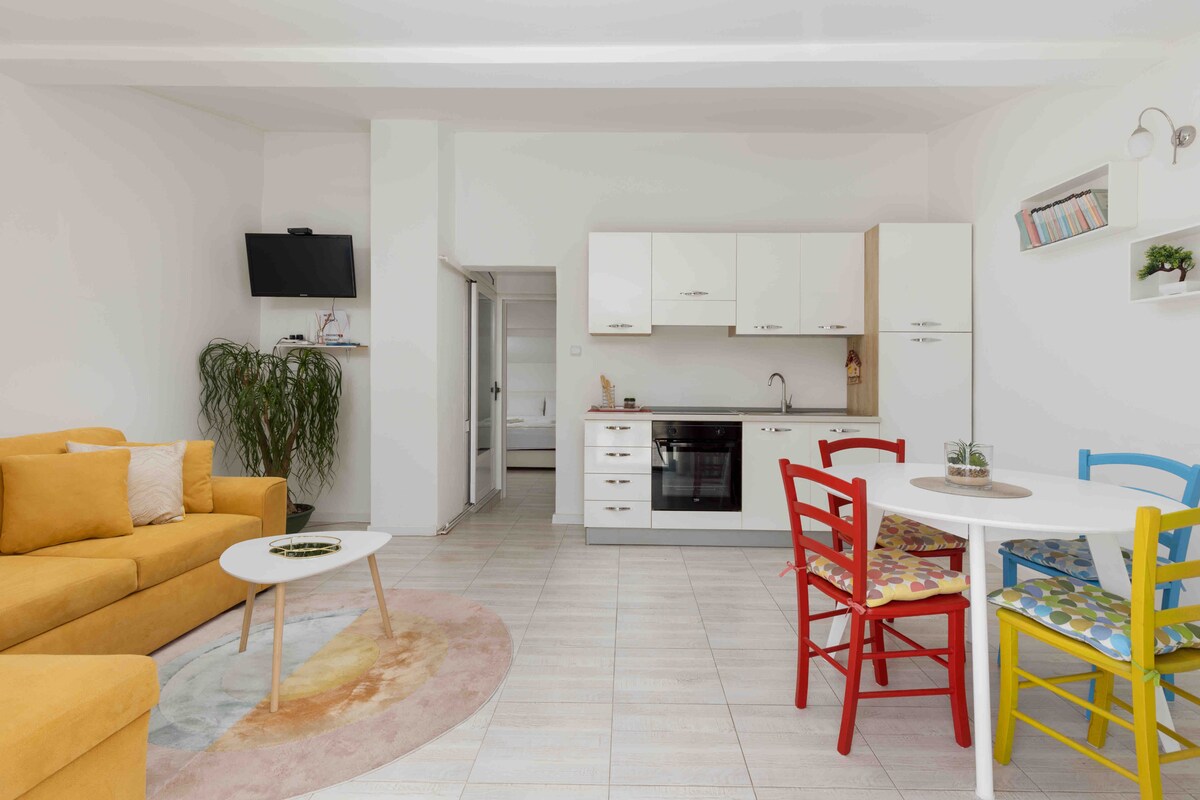 Apartamento totalmente equipado con balcón privado soleado y vistas increíbles a la bahía. Amueblado de manera moderna y diseñado para hacer que cada estancia sea cómoda. Apartamento se encuentra a 300 metros del mar ya 1,50 kilómetros de nuestro hermoso casco antiguo. Tamaño del apartamento 41 m2 con capacidad para 4 personas. Además, ubicado en un edificio nuevo (finalizado en 2020) con ascensor. Si deseas disfrutar de privacidad y comodidad, nuestro apartamento podría ser una alternativa a un hotel tradicional.
