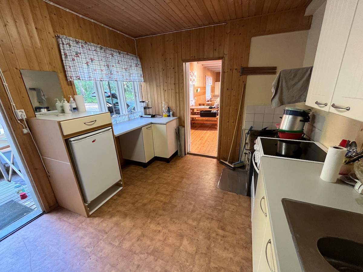 Casa de campo en el campo. Cocina, sala de estar, aseo, sauna, lavandería, lavandería, vestidor, pasillos. Una cama de matrimonio en la alcoba para dormir y un sofá cama en el salón son 136 cm. El espacio es funcional para 1 o 2 adultos y tiene capacidad para 1 o 2 niños. Nota: Se admiten mascotas, pero deben indicarse caso por caso y deben indicarse en el momento de la reserva. Aproximadamente Helsinki 1,5 horas, Kotka 45 min, Hamina 45 min, Lahti 1 h 10 min, Loviisa 40 min. Al centro de Kouvola 40 min.