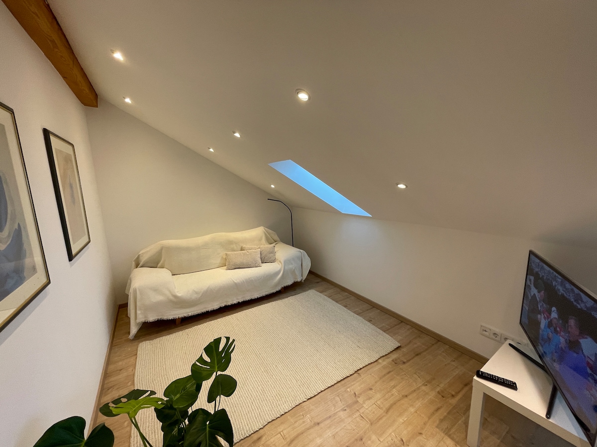 ¡Bienvenido a nuestro encantador departamento antiguo en el corazón de la ciudad! Disfruta del ambiente histórico con vigas de madera expuestas y disfruta de noches acogedoras con Netflix y Disney+. Cama tamaño king + sofá cama grande Ubicación céntrica Restaurantes, tiendas, supermercados cercanos Llegada autónoma Cocina totalmente equipada. ¡Esperamos recibirte en nuestro hogar y crear experiencias inolvidables juntos en nuestra ciudad!