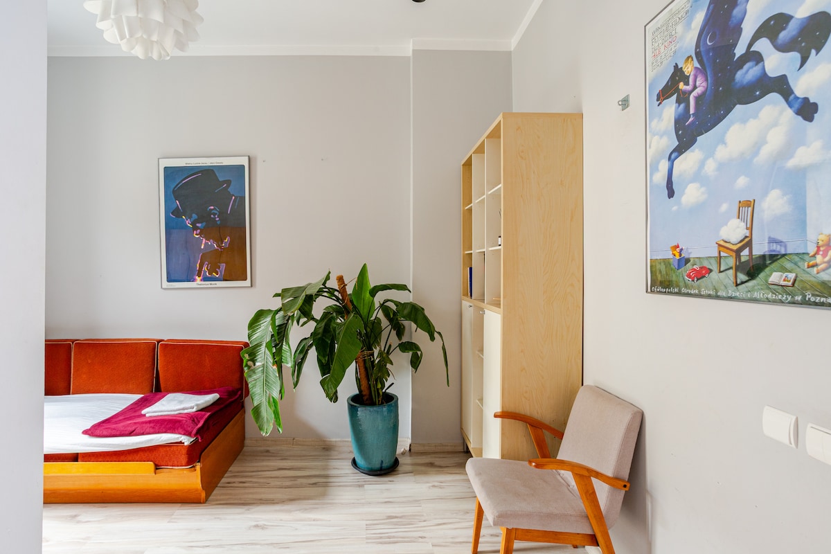 Bienvenido a nuestro espacioso estudio en el sótano en el histórico distrito de Podgórze de Cracovia. Con capacidad para hasta 6 huéspedes, cuenta con 2 camas dobles y un sofá cama. Ubicado cerca del río Vístula, disfruta de un fácil acceso a atracciones como Kazimierz (barrio judío), el castillo de Wawel y la plaza del mercado principal. Rodeado de restaurantes, cafeterías y tiendas locales, nuestro estudio ofrece el refugio perfecto después de explorar Cracovia.