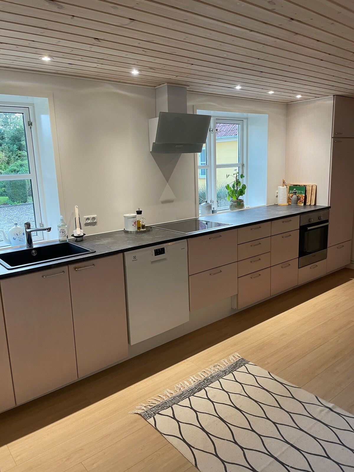 Acogedor anexo de 30 m2, situado en un lugar precioso cerca del lago Ollerup. Construido en 2022 con paredes de ladrillo en bruto y techos de madera, lo que le da un ambiente muy especial. Ideal para 2 personas o una familia pequeña. Cama de 140x200 cm en el salón, así como un altillo con capacidad para dos huéspedes adicionales. (2 colchones individuales) No hay altura de pie en el altillo. Hay una entrada privada, terraza de madera y acceso al lago Ollerup. Check-in a partir de las 16:00 Salida antes de las 12:00 Pregunte si los horarios no son adecuados.