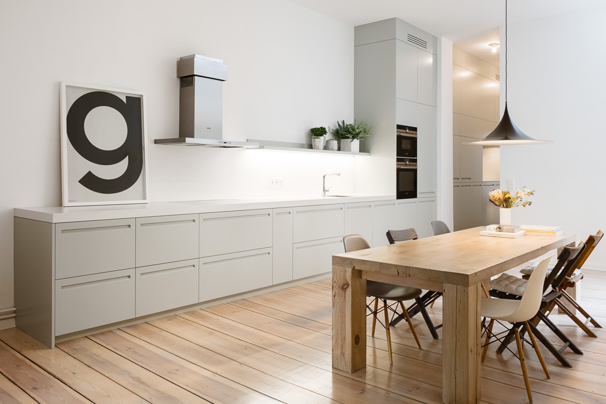 El apartamento se encuentra en un cobertizo recientemente renovado del año 1900 en Berlín. Se accede a la casa a través de la casa delantera en Mittenwalderstrasse 8 y se encuentra en el tranquilo patio interior. El apartamento de 70 metros cuadrados se encuentra en el primer piso y es accesible a través de una escalera. El corazón de la vivienda es la gran y luminosa cocina, que cuenta con un amplio equipamiento y un comedor.