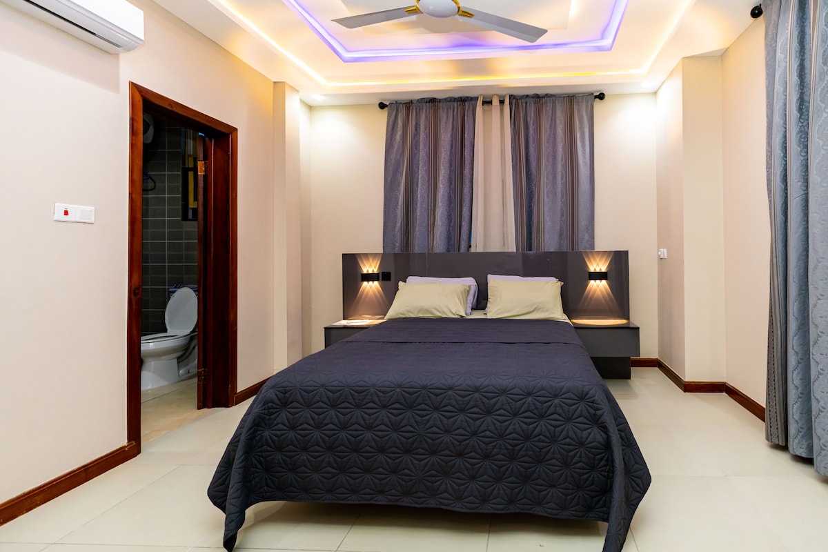 ¡Trae a todo el equipo! Nuestro espacioso apartamento de 2 dormitorios es perfecto para la diversión familiar, con mucho espacio para relajarse y jugar. Además, estás a solo 5 minutos a pie del centro comercial Kumasi City Mall, por lo que es fácil ir de compras, cenar y disfrutar de lo mejor de la ciudad.