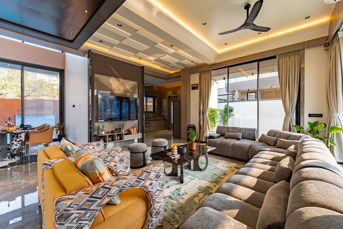 Disfruta de una escapada real en esta lujosa villa 4BHK con piscina privada, juegos interiores y limpieza diaria. Perfecta para familias y grupos, la villa ofrece un refugio sereno con lujosos interiores y servicios personalizados. Disfruta de comidas vegetarianas puras con opciones Jain disponibles previa solicitud. ¡Reserva ahora para una estancia inolvidable y con todos los servicios! Estacionamiento gratuito, ascensor privado en la villa,