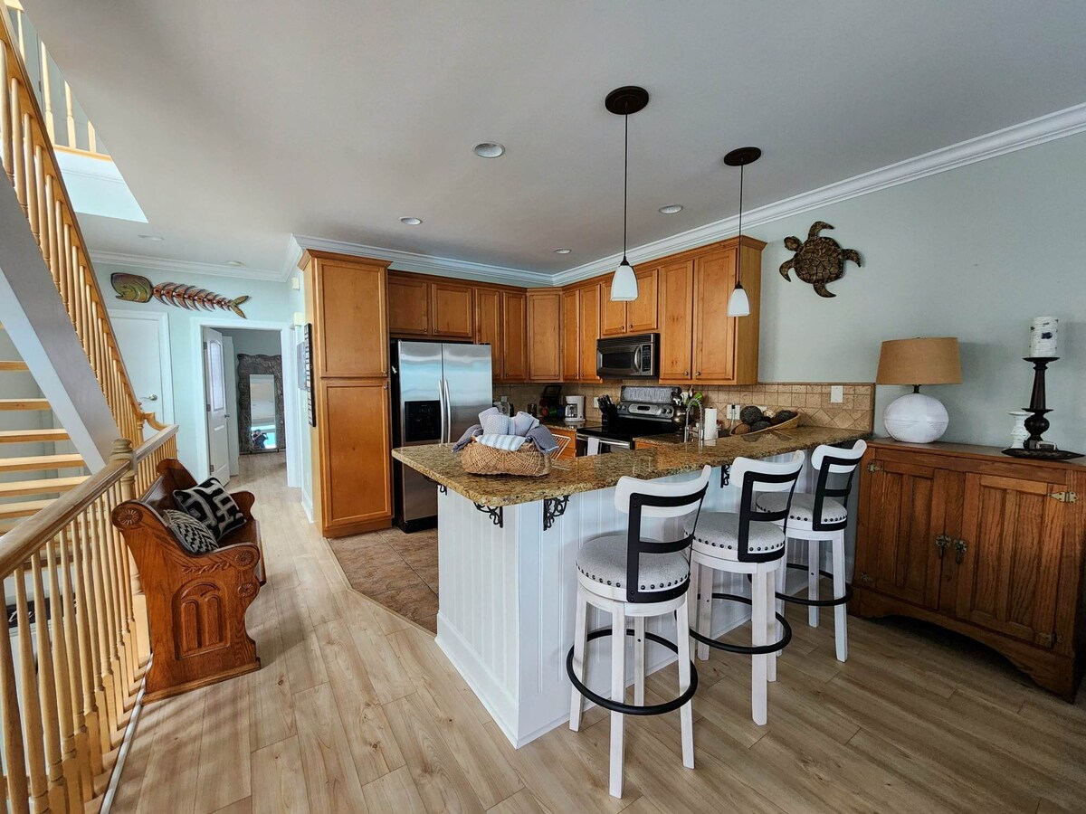 Welcome to your new favorite vacation home, The Salty Dog ReTreat at Kure Beach, NC! This spacious 3-bedroom, 2.5 bath, dog friendly home sleeps 8 people comfortably in a quiet cul-de-sac less than 2 blocks away from the beach with private beach parking and access. Enjoy the covered decks on 2 levels and fastest WiFi for those working from home or e-learning with kids. Relax in the fenced-in back yard with a hot tub pavilion equipped with an outdoor bar, gas grill, and outdoor shower.