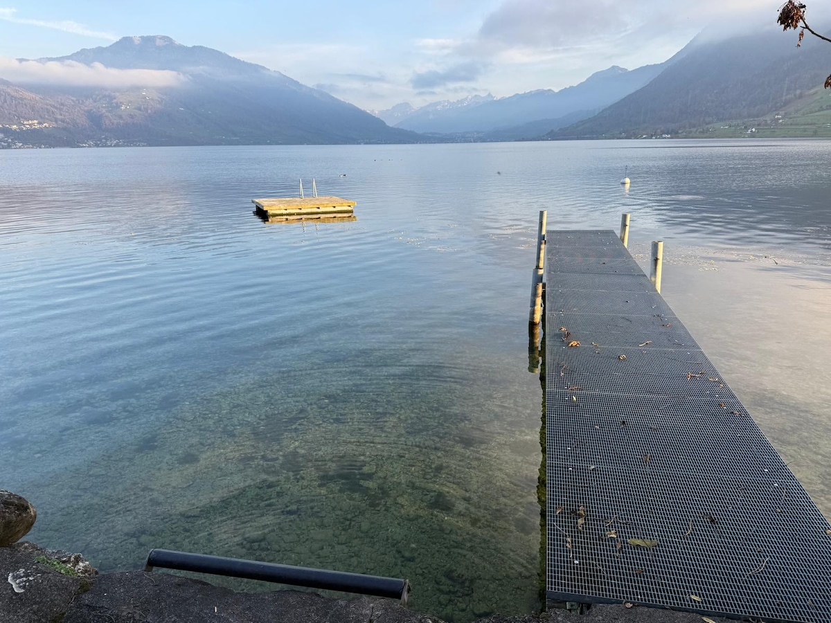 Highlights der Wohnung: - **Terrasse direkt am See:** Genießen Sie unvergessliche Sonnenuntergänge und entspannende Stunden auf Ihrer privaten Terrasse mit direktem Zugang zum Wasser. - **Pool ** Tauchen Sie ein in Ihren eigenen Wellnessbereich! Der beheizte Pool lädt zum Relaxen und Regenerieren ein. DER POOL IST DAS GANZE JAHR BEHEIZT ! ***Für 45 Franken stellen wird Ihnen eine volle Gasflasche für den Fuertisch der sich im Pavillon befindet zu verfügen*** Standuppaddles vorhanden.