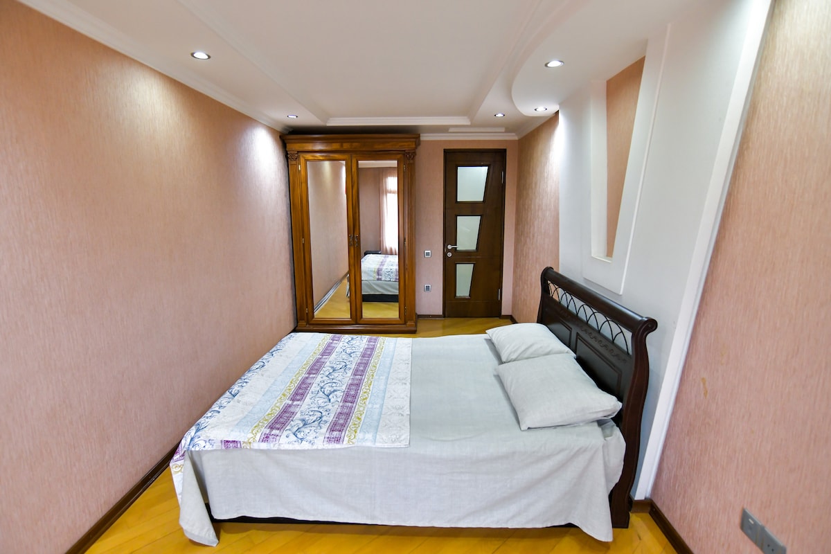 Cozy modern apartment in central Kutaisi, on Gamakhurdia Street 35. Newly renovated 1-bedroom flat with heating, air conditioning, Wi-Fi, and a sunny balcony. Shops and pharmacy downstairs, public transport nearby. Perfect for couples or long-term stays. $400/month or $40/night.