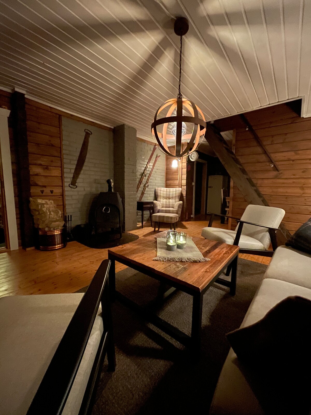 En invierno puedes aprovechar la pendiente de slalom que está justo al lado, solo tienes que ponerte los esquís slalom y comenzar justo en el sendero o ir a esquiar de fondo en un entorno pintoresco. También es un lugar agradable y tranquilo donde puedes relajarte con un buen libro, fogata de TV afuera, etc. Las auroras boreales se pueden ver a menudo en invierno 😀 En verano hay muchas oportunidades para hacer senderismo en las montañas y los campos, y en otoño hay una gran zona para recolección de bayas y setas.