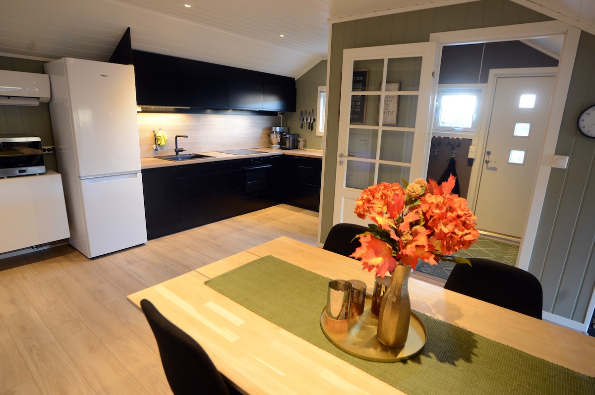 Saluda a todos los pájaros y animales 🧡 ¡Disfruta de la naturaleza que te rodea! Tal vez necesites relajarte, leer un libro o querer bañarte en hielo en el mar 🩵 Conocida por su hermosa naturaleza y las auroras boreales. Aquí es fácil observar las auroras boreales (septiembre-abril) Ropa de cama y toallas incluidas en el precio Gran patio para perros (con casa para perros) para aquellos que tienen perros con ellos. (Barco que se puede alquilar, si está interesado)