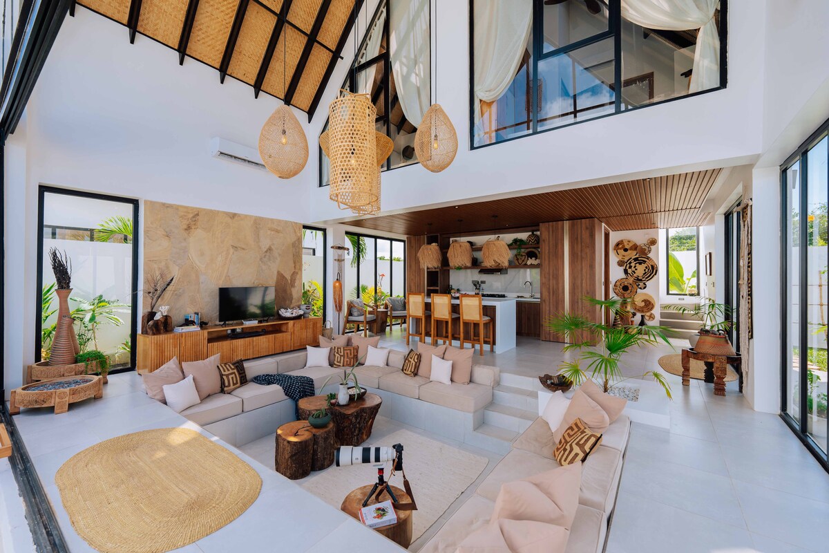 Una lujosa escapada tropical en la serena costa oeste de Zanzíbar. Nuestra espaciosa villa, perfecta para familias, ofrece impresionantes vistas a la bahía de Menai, cuatro dormitorios con baño, cocinas interiores y exteriores, y una impresionante piscina frente al mar. Disfruta de comodidades modernas como aire acondicionado, televisores inteligentes, WiFi y una PlayStation. Relájate en nuestro solárium frente a la impresionante vista al mar. A solo 15 minutos de la ciudad de Zanzíbar y a 20 minutos del aeropuerto, disfruta de tu última escapada del ajetreo y el bullicio.
