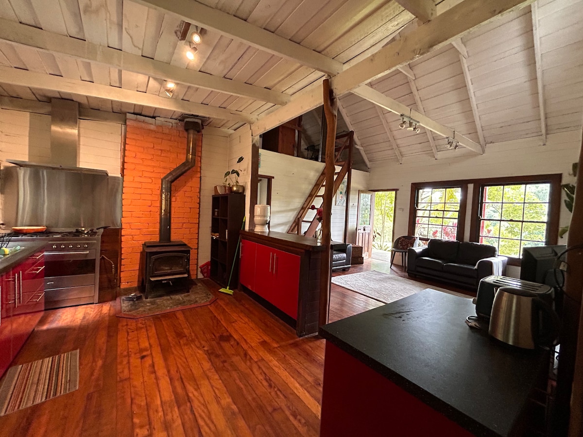 Esta casa aislada en las montañas está rodeada de bosques remanentes y jardines fragantes. Relájate y recarga energías en la tranquilidad del monte. Observa la vida silvestre de cerca. Totalmente independiente, apta para parejas, familias o grupos. Explora, haz senderismo, disfruta de muchos juegos y diversión en familia sin coste adicional. La casa cuenta con dos amplias salas de estar, cocina de campo bien equipada, tres amplios dormitorios con aire acondicionado, dos baños y una sala de juegos separada con tenis de mesa. Chimeneas interiores y exteriores.