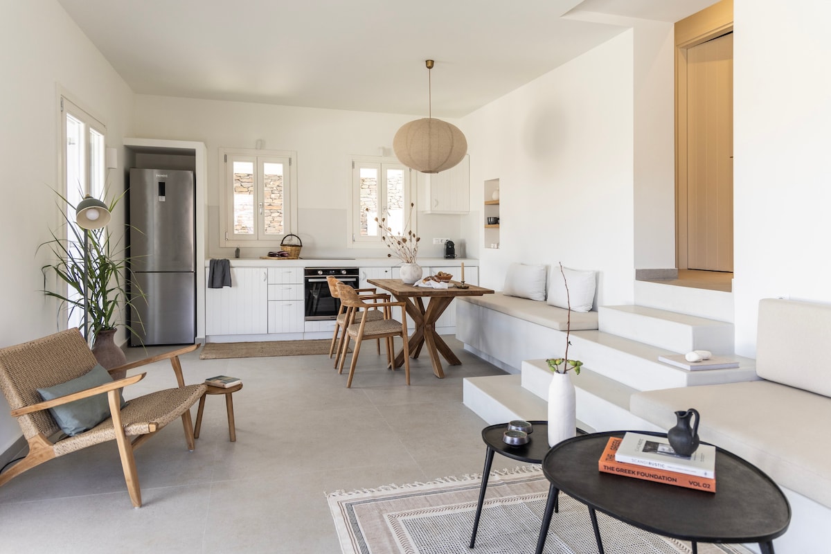 Some places are escapes, and some are statements. Idylle Kythnos Villa is both. Tucked into the sun-drenched hills of Dryopida, one of Kythnos’ most charming villages, this three-bedroom, three-bathroom hideaway offers uninterrupted Aegean views and a front-row seat to island life at its best.
