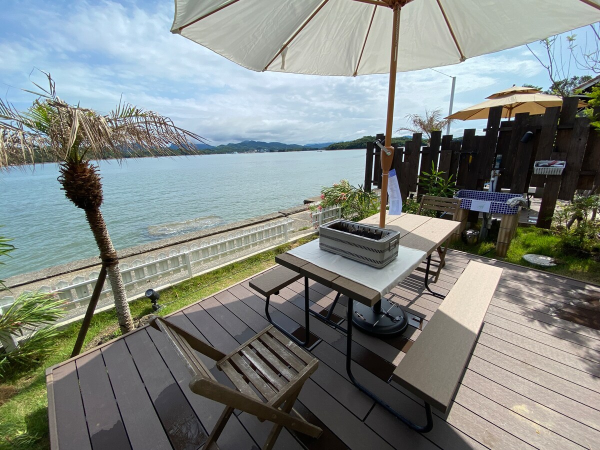 Es una casa de contenedores donde el mar se extiende frente a ti.La zona es una ubicación costera a 9 minutos en auto del ayuntamiento de Kamitsukusa.El estacionamiento está asegurado para dos autos.Hay un espacio donde se puede disfrutar de una barbacoa mientras se mira al mar, y un fregadero al aire libre donde se puede cocinar el pescado capturado.Además, hay una gran sombrilla de jardín instalada, por lo que puedes disfrutar de una barbacoa incluso en el clima lluvioso.También puedes disfrutar de una hora extraordinaria, como una plataforma de observación con observación de estrellas.¡Especialmente para familias con niños! * Si tienes una barbacoa, lee las reglas de la casa con antelación [Contramedidas COVID-19] Como contramedida contra la COVID-19, estamos introduciendo aire acondicionado con función de ventilación.