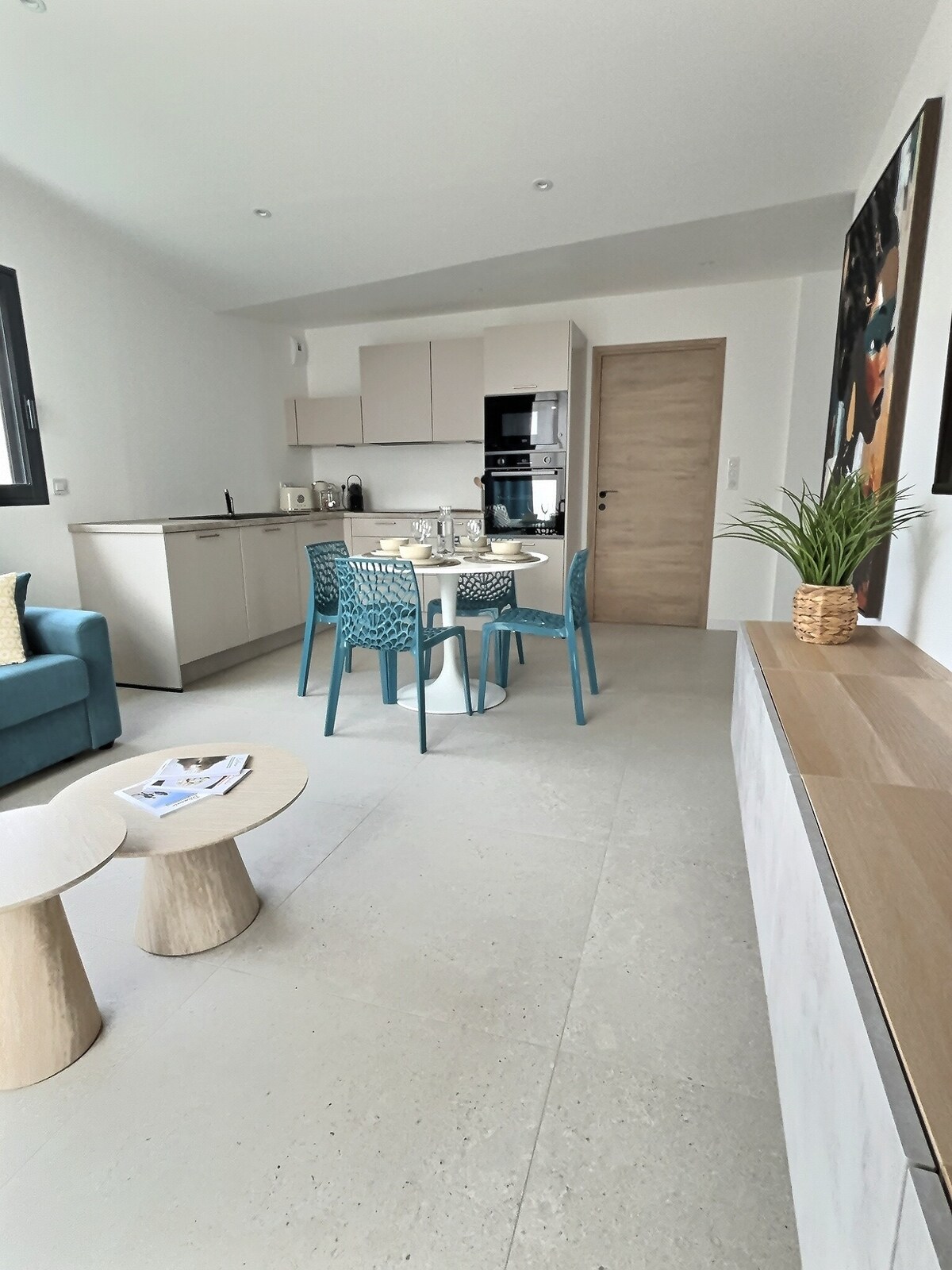 Precioso apartamento de 2 habitaciones en un edificio de lujo reciente y seguro, idealmente situado en primera línea de playa. El apartamento cuenta con una terraza arbolada y una hermosa vista despejada de los pinos, sin vecinos. Tiene la doble ventaja de una ubicación muy céntrica cerca de todos los comercios, la playa, y aun así es absolutamente tranquilo. No hay problemas de aparcamiento gracias al garaje cerrado en el sótano. La limpieza está incluida. Para el periodo del 15 de junio al 15 de septiembre, mínimo 5 noches.