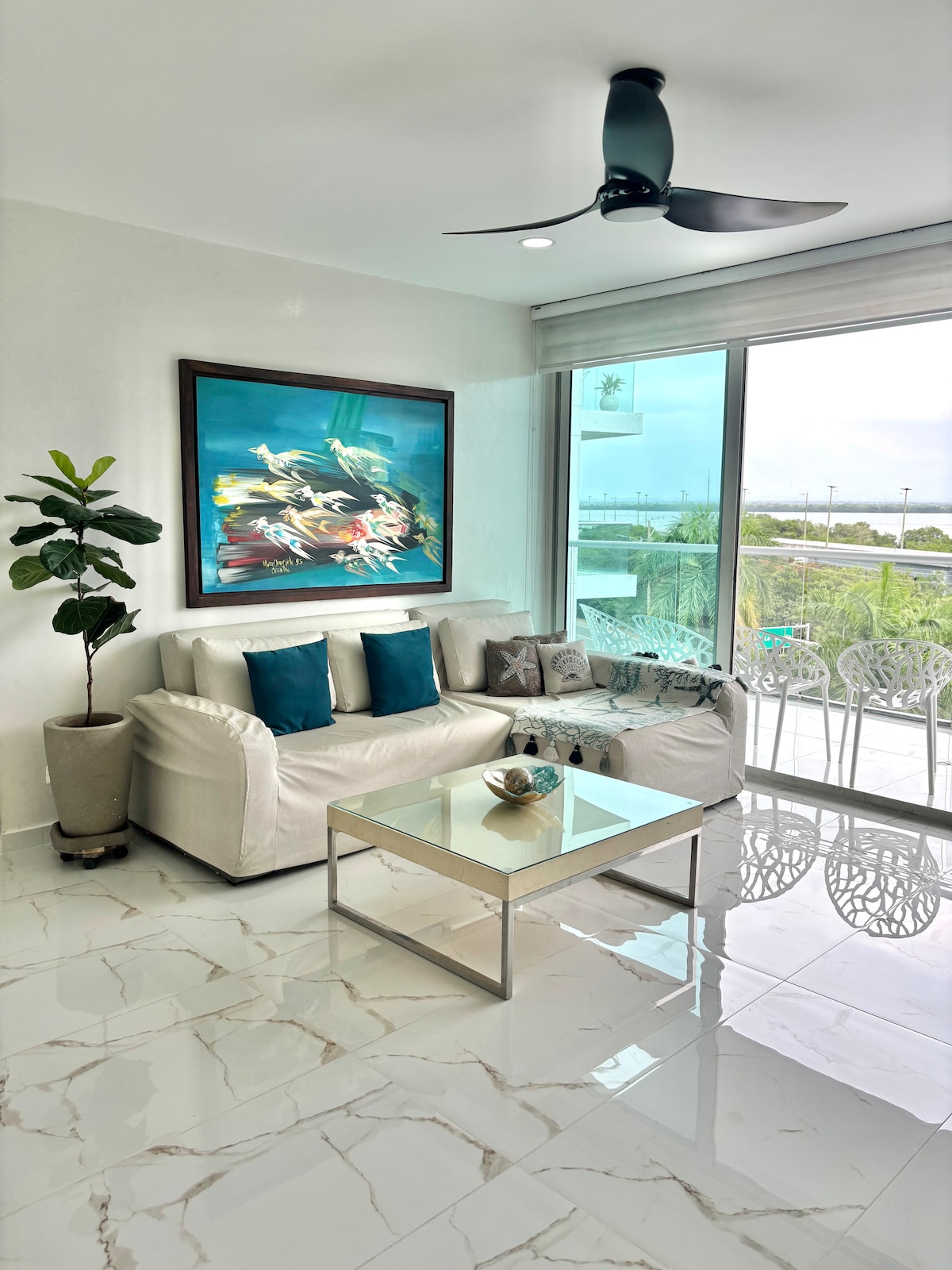 Apartamento completo frente al mar de lujo en Morros Epic, La Boquilla - la única playa con certificación Bandera Azul en Cartagena. Vistas panorámicas al Caribe, playa privada y amenidades de resort cinco estrellas. Ubicado a 20 minutos del centro histórico de Cartagena y 8 minutos del Centro Comercial Las Ramblas. Perfecto para familias, parejas, trabajo remoto y vacaciones de lujo. Zona Norte exclusiva, lejos del bullicio de Bocagrande, con privacidad total y seguridad 24/7.