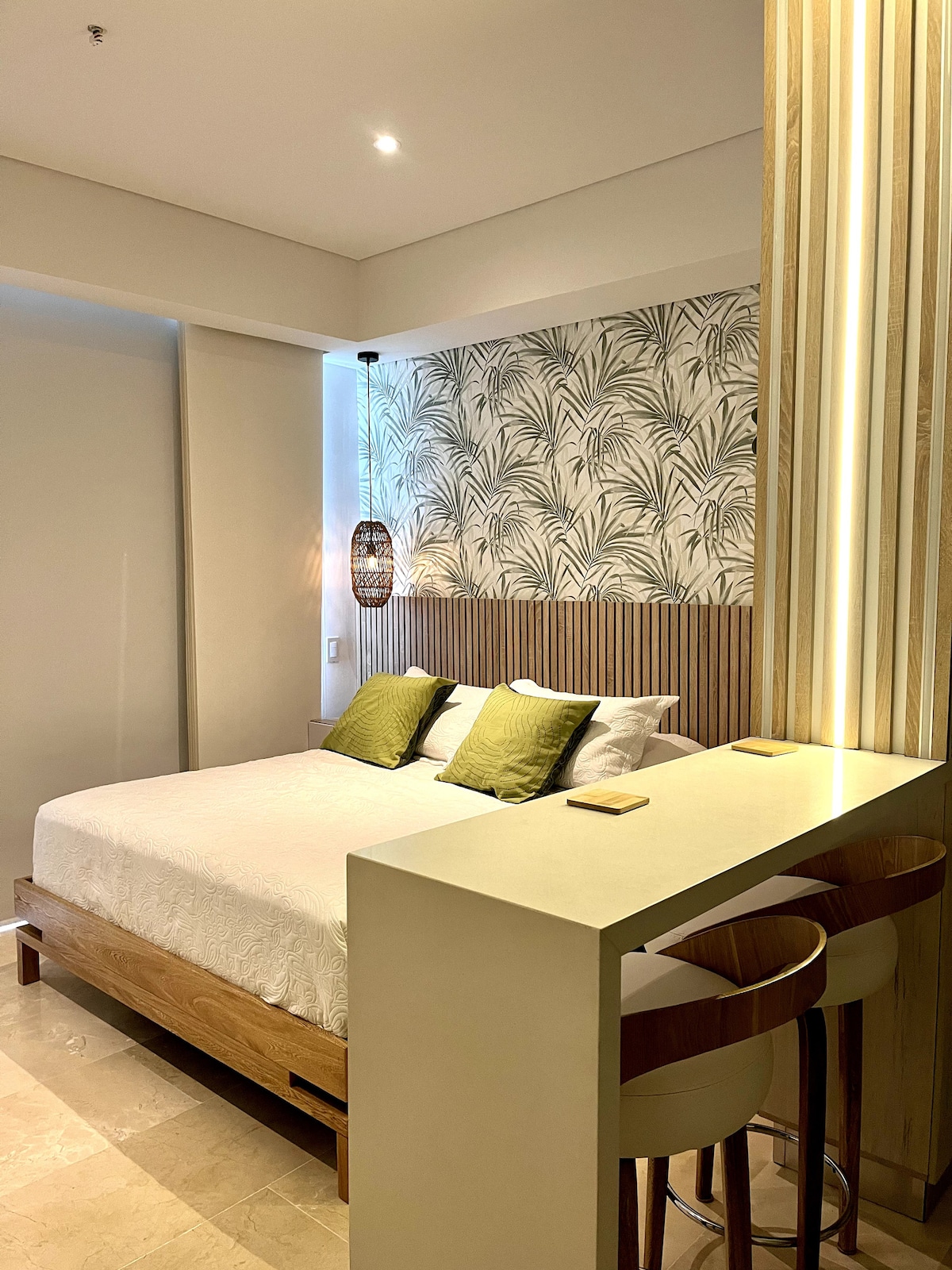 🏖️ Loft moderno en Morros Vitri con acceso directo a playa. 📍 UBICACIÓN: 5 min aeropuerto | 10 min centro histórico | Supermercado y restaurantes a pasos 🏠 ESPACIO: Cama King + sofá cama | 2 baños | 2 Smart TVs 50" | WiFi fibra óptica | Cocina totalmente equipada | Lavadora-secadora | A/C 🌴 AMENIDADES: Piscina adultos/niños | Gym | Jacuzzi | Baño turco | Estacionamiento | Seguridad 24/7 ✨ Incluye toallas playa/baño, sábanas y artículos de aseo. 💼 Ideal para familias, parejas o trabajo.