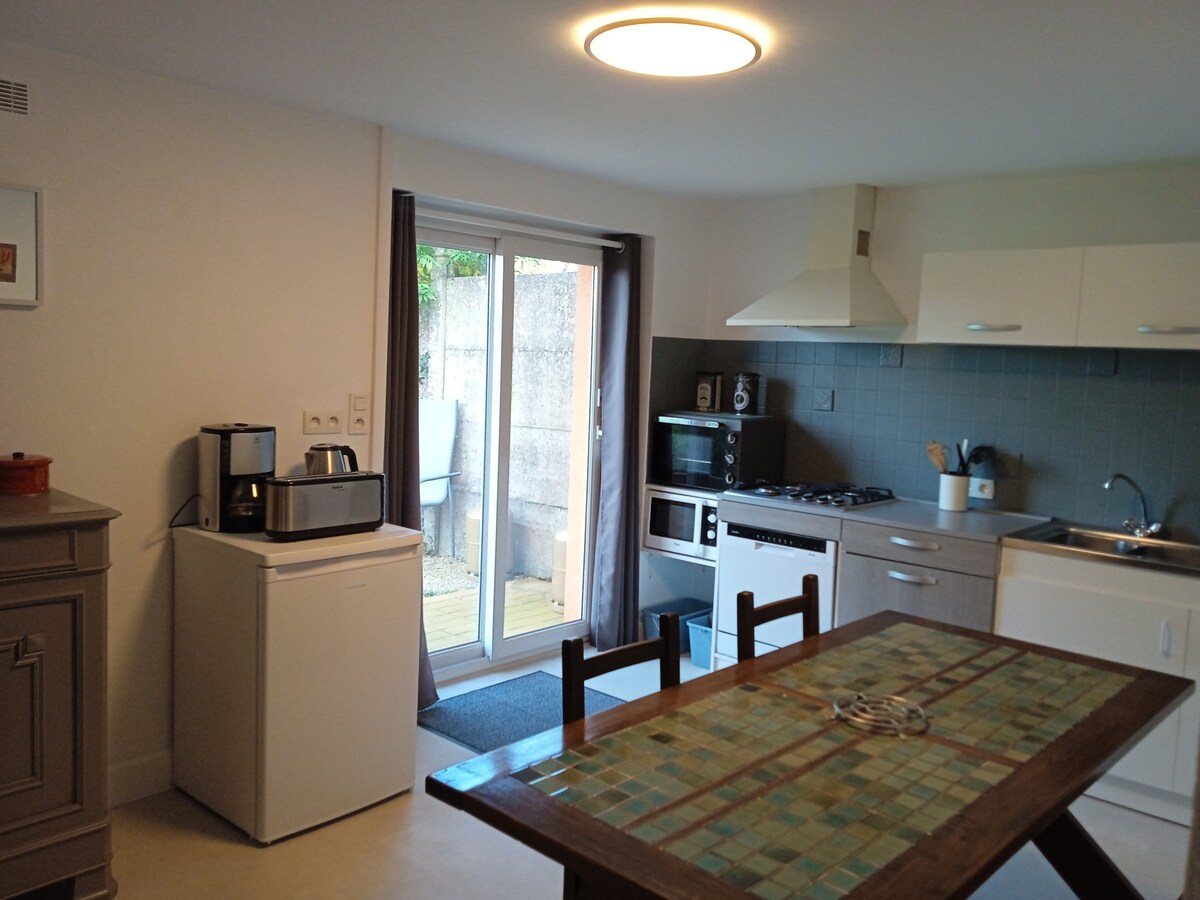 El estudio, que consta de dormitorio (camas hechas), cuarto de baño (ducha y lavabo, toallas incluidas), cocina americana (placas eléctricas y horno microondas) y WC, se encuentra en el primer piso de un castillo (siglos XV y XVIII) en un entorno florido y arbolado, tranquilo, a 1 km del pueblo por un camino forestal privado. Puede, a través del anuncio «estancia en el castillo», beneficiarse de 2 habitaciones. (ver el anuncio en Airbnb)