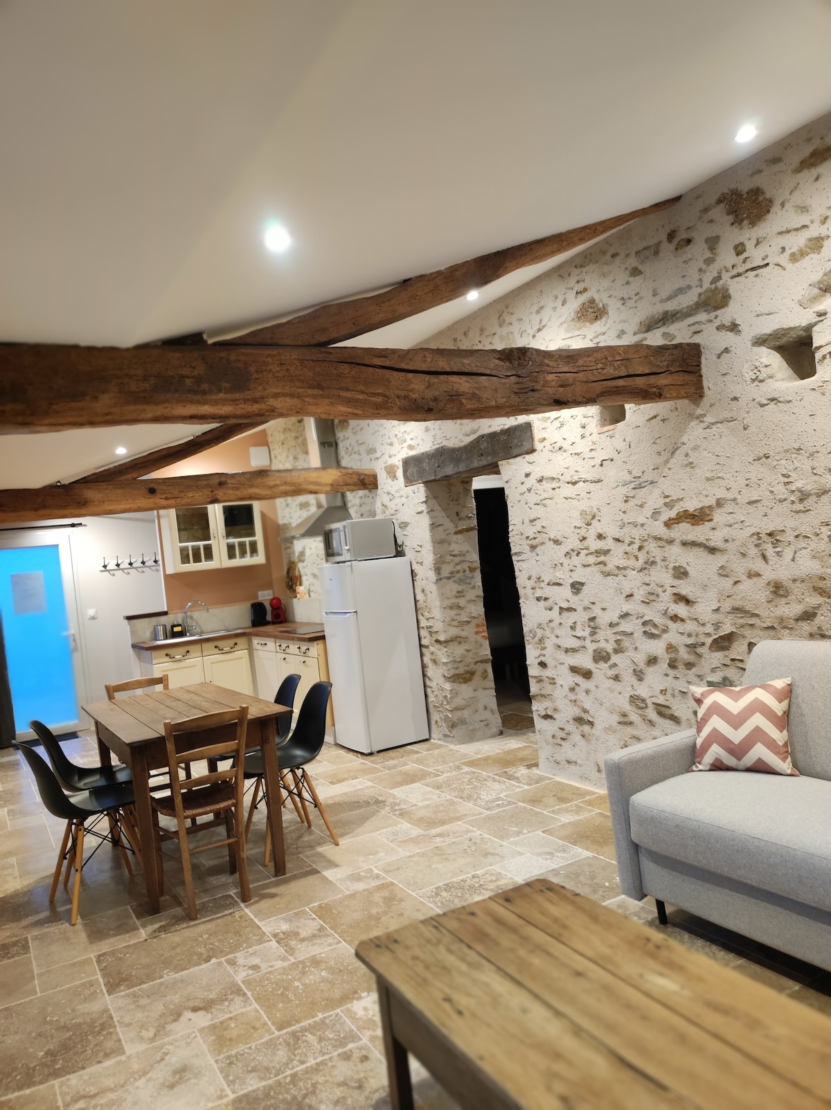 Antiguo establo, completamente rehabilitado en una espaciosa planta baja de 60 m2 con capacidad para 4 a 6 personas, en el centro del pueblo de la encantadora comuna de La Chevrolière. Comercios y transporte (línea 312) cerca, a menos de 500 m. La naturaleza está a 2 pasos tomando el sendero peatonal de La Coulée Verte que conduce al lago de Grandlieu. A 15 minutos del aeropuerto, a 20 minutos del centro de la ciudad de Nantes, a menos de 1 hora de las playas. Aparcamiento privado y gratuito.