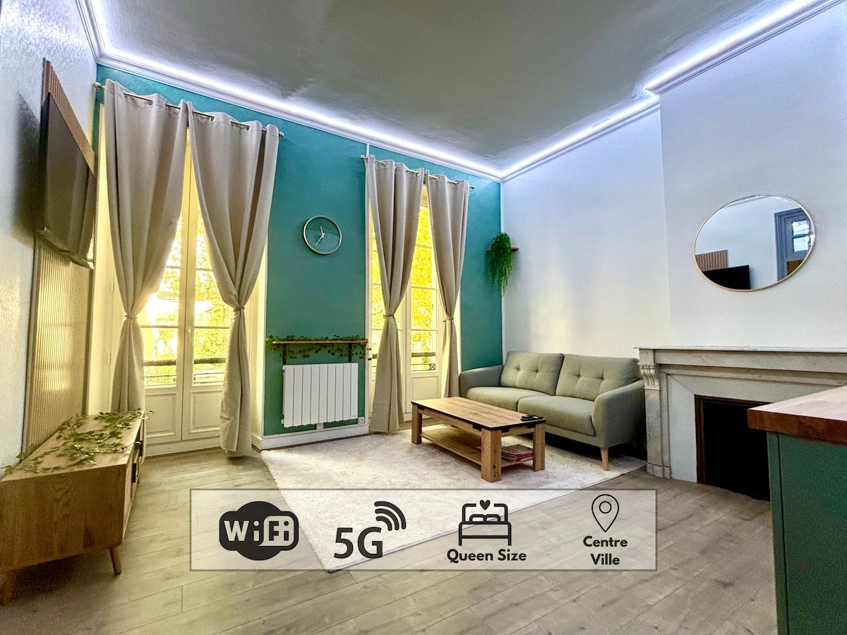 ¡Encantadora y bohemia pausa en el corazón de Saintes! Un refugio en la ciudad, entre historia, relax... ¡y glicinas! 🌸 Deje sus maletas en esta casa de campo luminosa, para una estancia tranquila y agradable en familia o con amigos.👝🎒 Su céntrica ubicación le permite descubrir a pie los principales tesoros de la ciudad: los restos galorromanos, incluido el anfiteatro, las orillas del Charente, sus mercados y sus bonitas callejuelas. Si te apetece dar un paseo por la playa, el océano está a 45 minutos en coche. 🏄♂️