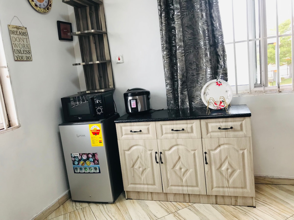 Nii Dessie es un apartamento boutique de lujo con un estilo único. Está completamente amueblado como un hogar. El dormitorio está amueblado con una cama tamaño queen, un televisor inteligente de 55 pulgadas para tu entretenimiento, es decir, Netflix y Youtube. También tiene una nevera, armario, aire acondicionado y una estación de trabajo que también sirve como comedor, una plancha y tabla de planchar para todo tu planchado. Viene con un lujoso compañero de lavandería compartido que tiene un balcón para relajarse en caso de que necesites aire fresco fuera del espacio del apartamento.