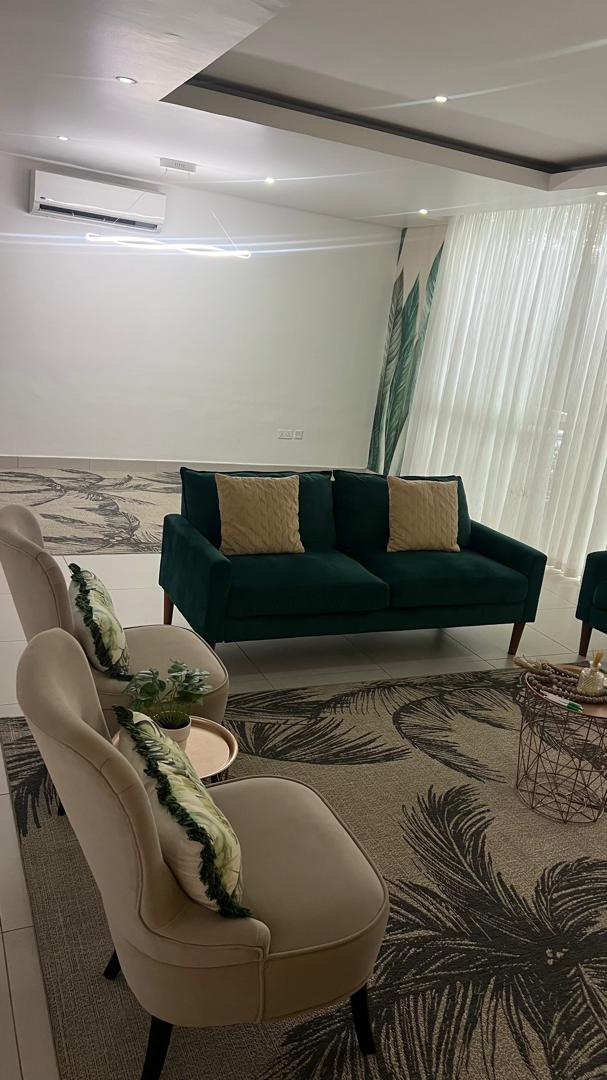 El apartamento Decade Ubicado en el Aeropuerto Este, cerca de los principales lugares de interés del centro de la ciudad, como el aeropuerto (10 minutos), la comisión de tierras, el centro comercial Accra, el apartamento, etc. Este apartamento contemporáneo tiene una gran sala de estar, un concepto de cocina abierta, lavandería construida, 2,5 baños, piscina/terraza en la azotea, armario grande.