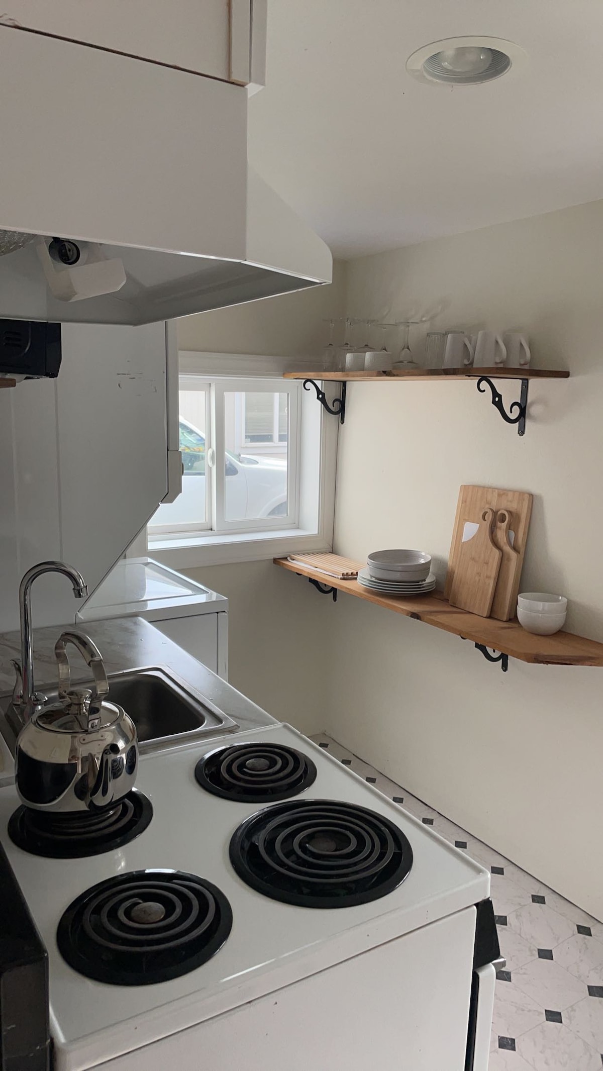 El estudio de la primera planta cuenta con una cama tamaño king y un sofá cama tamaño queen. Esta unidad cuenta con electrodomésticos de acero inoxidable, encimeras de cuarzo, microondas, cafetera Keurig, plancha, lavadora/secadora y estacionamiento en el lugar. Los apartamentos están convenientemente ubicados para ir al centro de La Grande, a la Universidad de Oregón Oriental y al Hospital Grande Ronde.
