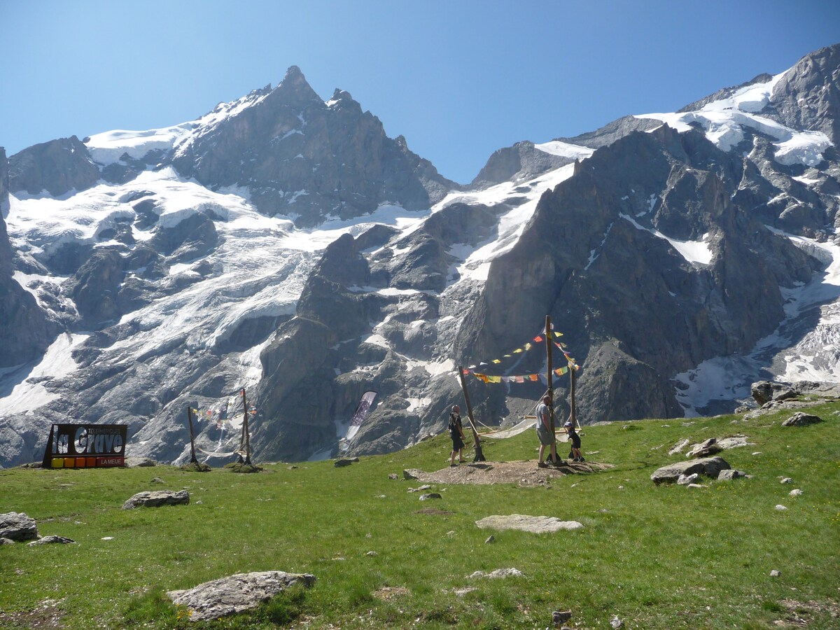 Ven a disfrutar de una estancia en el corazón del pueblo de la Grave en un acogedor estudio recientemente renovado. ¡La Grave, clasificado entre los pueblos más bonitos de Francia, es un paraíso para los amantes de la montaña! El estudio se encuentra a 5 minutos a pie del teleférico y cerca de las tiendas (panadería, pub, restaurantes, tienda de comestibles a menos de 2 minutos a pie). Desde el sofá o el balcón podrá disfrutar de una magnífica vista del Meije, el Rateau y sus glaciares.