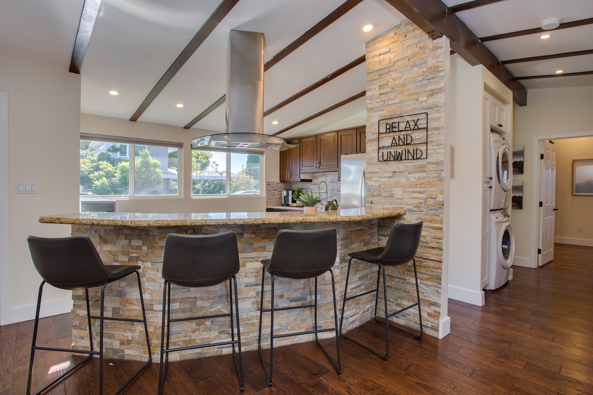 La vida costera se encuentra con el paraíso tropical en esta joya de una casa en Cardiff by the Sea (Encinitas), una pintoresca ciudad costera céntrica para ir a donde quieras. Si tienes hijos (¡o eres un niño!), Legoland, SeaWorld, Birch Aquarium, SD Zoo, Wildlife Safari Park, Balboa Park y Del Mar Fairgrounds están a poca distancia en coche. Si quieres una escapada romántica y hípster, solo tienes que bajar la colina hasta la playa, restaurantes de moda, cafeterías, tiendas, surf, tomar el sol, observar a la gente y desconectar.