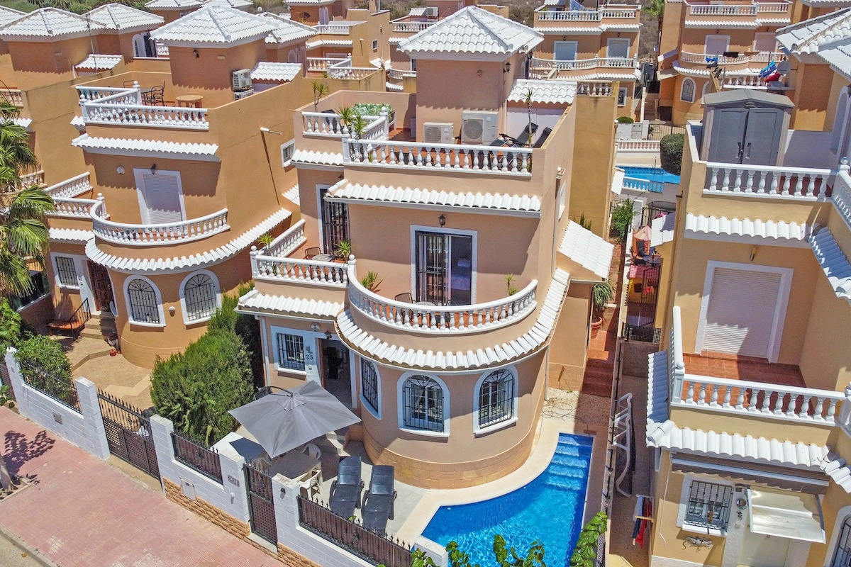 Villa con piscina privada y terraza en la azotea. El alojamiento contiene 3 dormitorios dobles, sala de estar, cocina, lavadero y 2 baños (1 dormitorio y 1 baño están bloqueados para los propietarios no actuales). Fibra óptica de 50 Mbps, TV, altavoz Bluetooth para música o radio. Cocina totalmente equipada, zona de barbacoa exterior y áreas de chill-out a la sombra. A 25 minutos del aeropuerto, a 10 minutos de las playas de "bandera azul". Hay unos 50 bares y restaurantes en la zona. El área más cercana está a 450 metros de la villa.