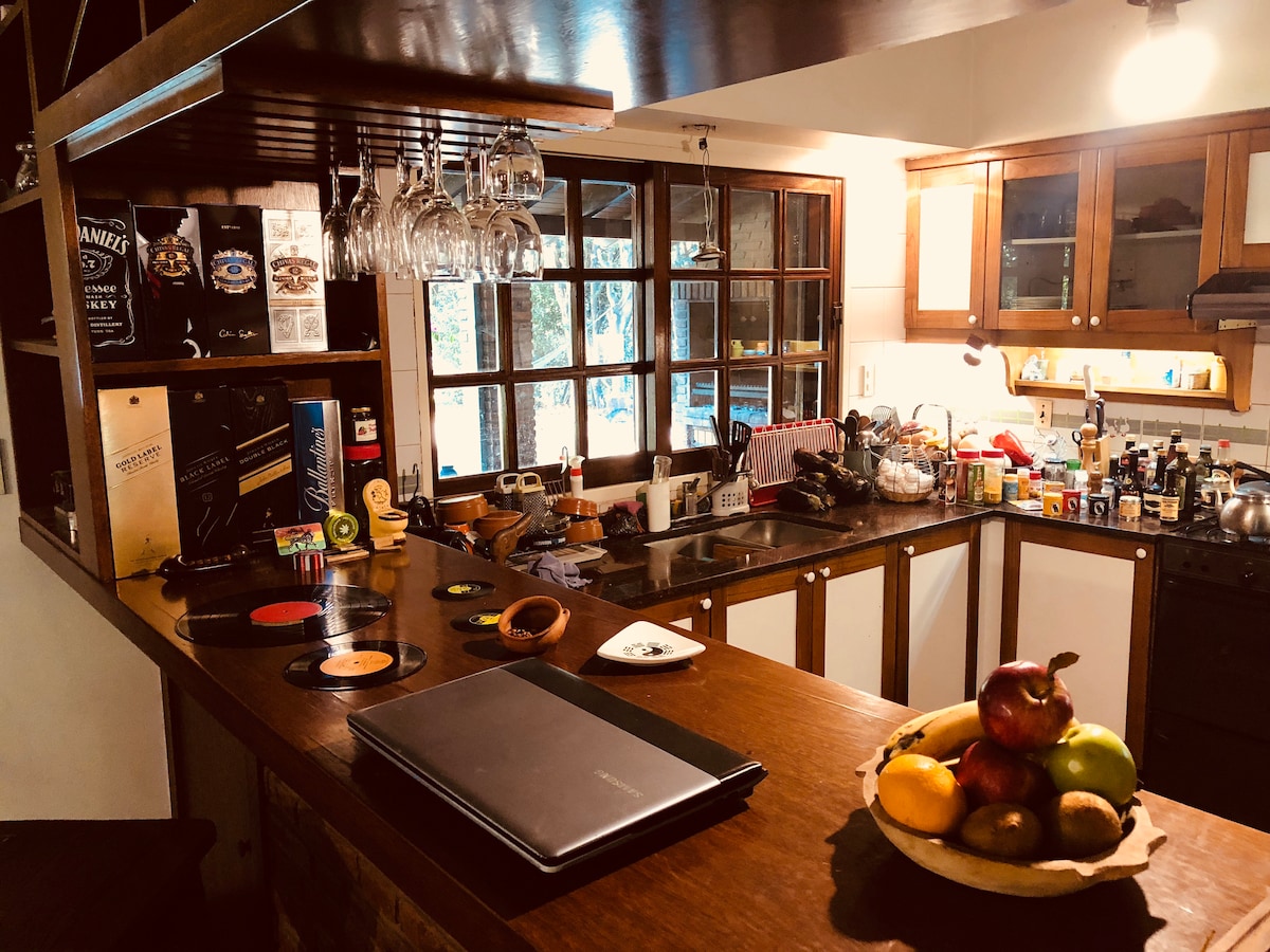 Casa amplia, luminosa y totalmente equipada, con gran parque privado ideal para desconectar a minutos de la ciudad. Living integrado, cocina completa y galería con parrilla para disfrutar en grupo todo el año. Ambientes cómodos y funcionales que invitan a relajarse y compartir sin apuro. El jardín arbolado brinda privacidad y un entorno verde perfecto para descansar, leer o comer al aire libre. Ideal para parejas, familias o grupos.