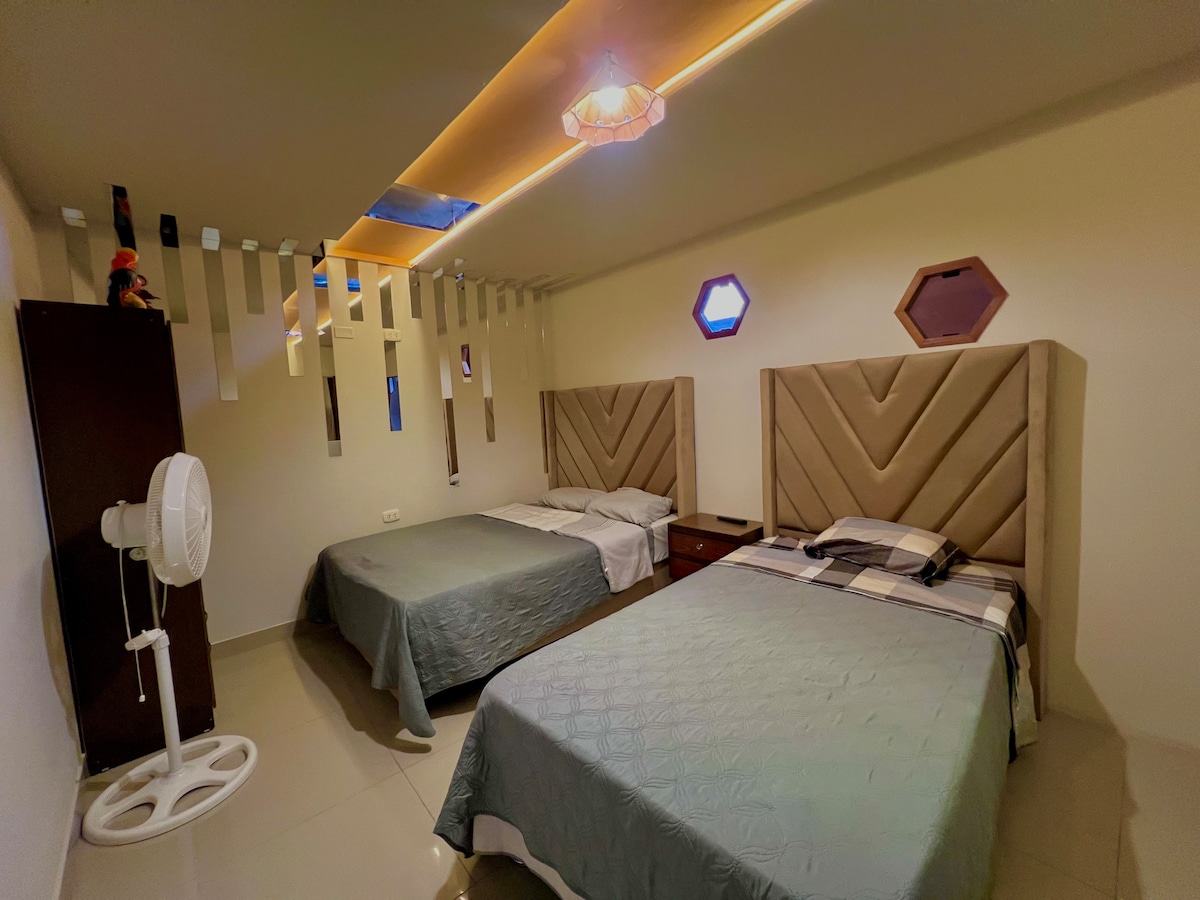 Hospedaje para 6 personas, 2 habitaciones triples