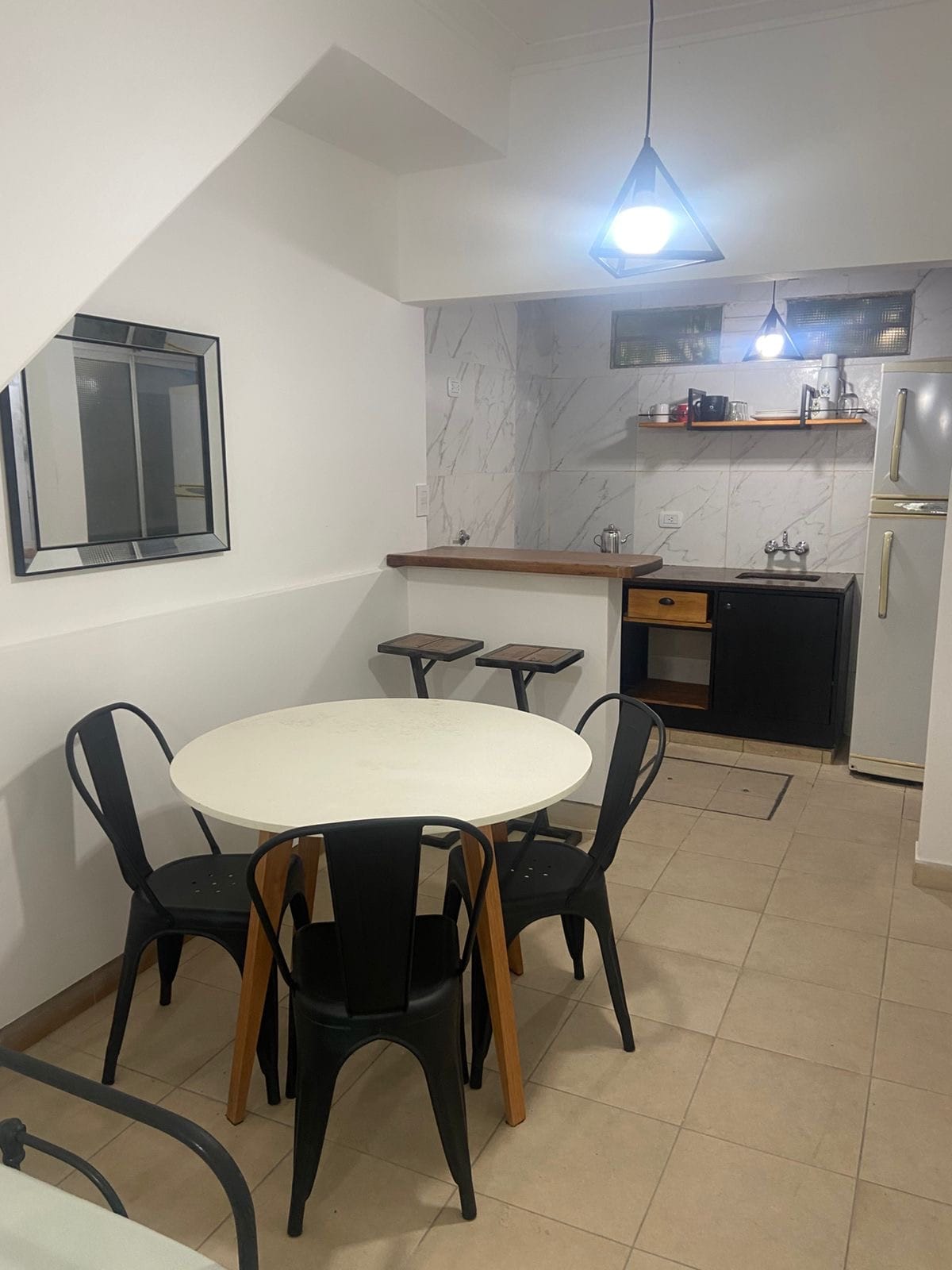 Casa entera de dos plantas ubicada en un mismo terreno con otra vivienda. Los espacios comunes (jardín, pileta y parrilla) se comparten. En planta baja cuenta con cocina equipada, heladera, mesa y sillas, y baño completo con ducha separada. En planta alta hay sillón cama de dos plazas, cama individual con opción de colchón adicional y escritorio. Dispone de aire acondicionado, calefacción y Wi-Fi. Ideal para una estadía cómoda y tranquila.