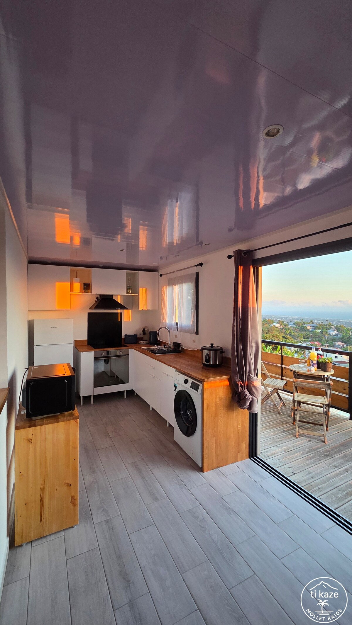 Ti Kaze Mollet Raide: encantador alojamiento nuevo en Rivière Saint-Louis, a 350 m de altitud, con vistas panorámicas al mar, desde la Pointe du Diable hasta el bosque de l'Étang-Salé. Disfrute de una terraza de madera de 30 m², una cocina moderna totalmente equipada como en casa, una cama tamaño queen y un sofá cama. Tranquilidad y confort. 🌋