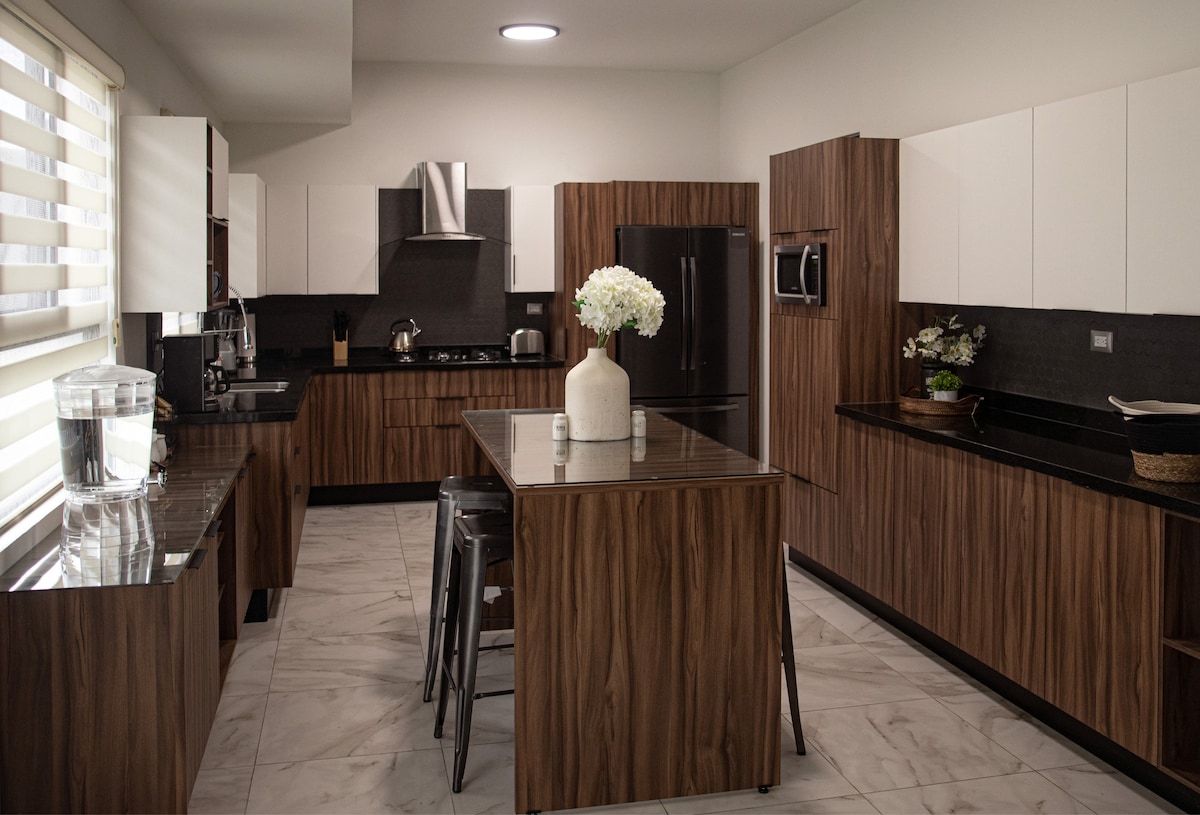 Disfruta de una experiencia con estilo en este hermoso alojamiento, pensando en la comodidad de tu hogar, te sentirás como en casa. Ubicada a unos pasos de restaurantes, antojitos, centros comerciales, clínica 35 del IMSS y a 10 minutos del Consulado Americano. La cocina esta equipada con los utensilios necesarios para preparar una deliciosa comida, cena o desayuno, parilla de gas, cazuelas, sartenes y microondas. El internet es de fibra óptica de Totalplay para hacer home office.