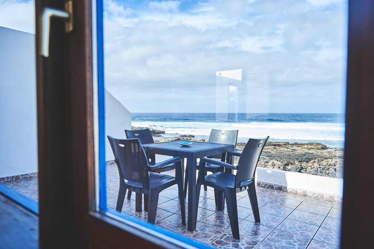 Apartamento de primera línea en La Santa, a 20 metros del mar y directamente en el camino del paseo marítimo costero. El apartamento se encuentra en el segundo piso con terraza privada con vistas al mar, puesta de sol y paseo marítimo. También hay una gran terraza comunitaria en el tercer piso. No está muy utilizado, por lo que es una buena oportunidad para quedarse allí por tu cuenta.