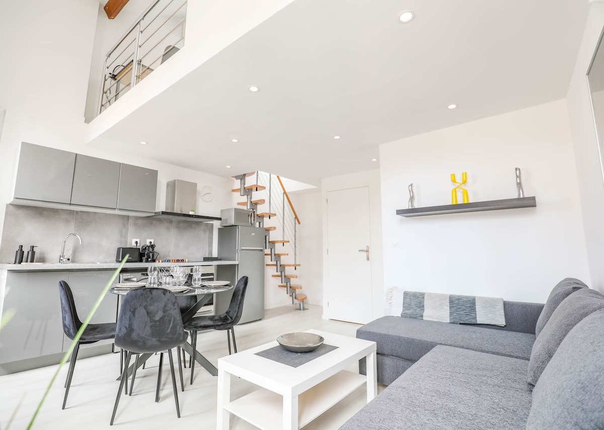Le ofrezco en mi edificio de Marsella, mi alojamiento situado en el segundo piso accesible solo por escaleras. Su superficie de 35 m2 puede alojar hasta 4 personas, con aire acondicionado, muy luminoso, cuenta con un dormitorio en altillo con vestidor, una cama doble muy cómoda y un espacio de trabajo. En la sala de estar encontrará un sofá cama, una cocina equipada y un televisor de pantalla plana con los programas de CANAL+ , acceso a Netflix y otras plataformas