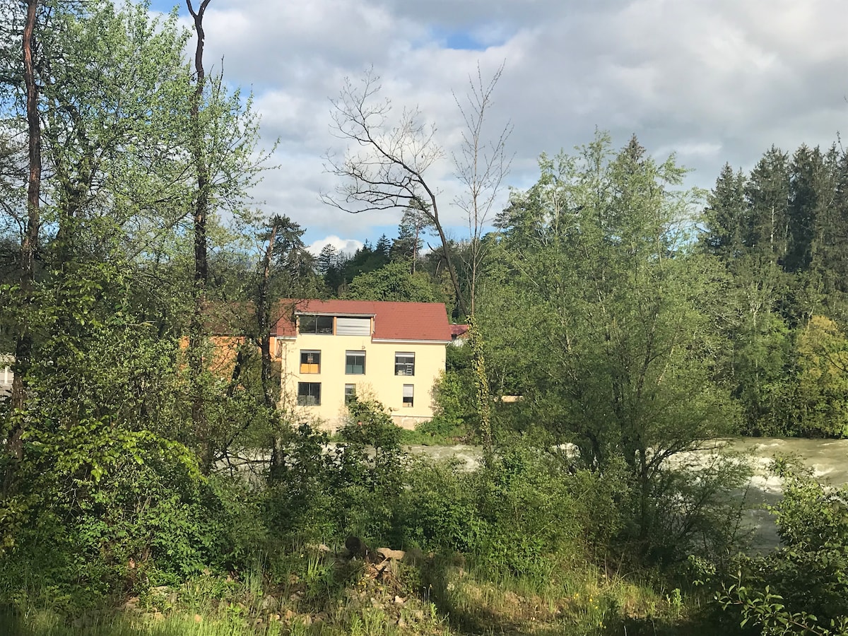Casa rural de 2 a 4 personas, ambiente de madera cálido con 1 dormitorio. Independencia total, plaza de aparcamiento cerca, salida de senderismo a 100 m, playa a 500 m, puerto y playa vigilada a 1 km, pistas de esquí nórdico a 30 minutos, esquí alpino a menos de una hora. Moirans en Montaña, capital del juguete a 10 minutos Lons ciudad balneario, Bálsamo los caballeros, cascadas erizo a 30' Equipado con raclette,cafetera, hervidor de agua, tostadora, lavadora, secadora, plancha, terraza, barbacoa Sábanas no incluidas