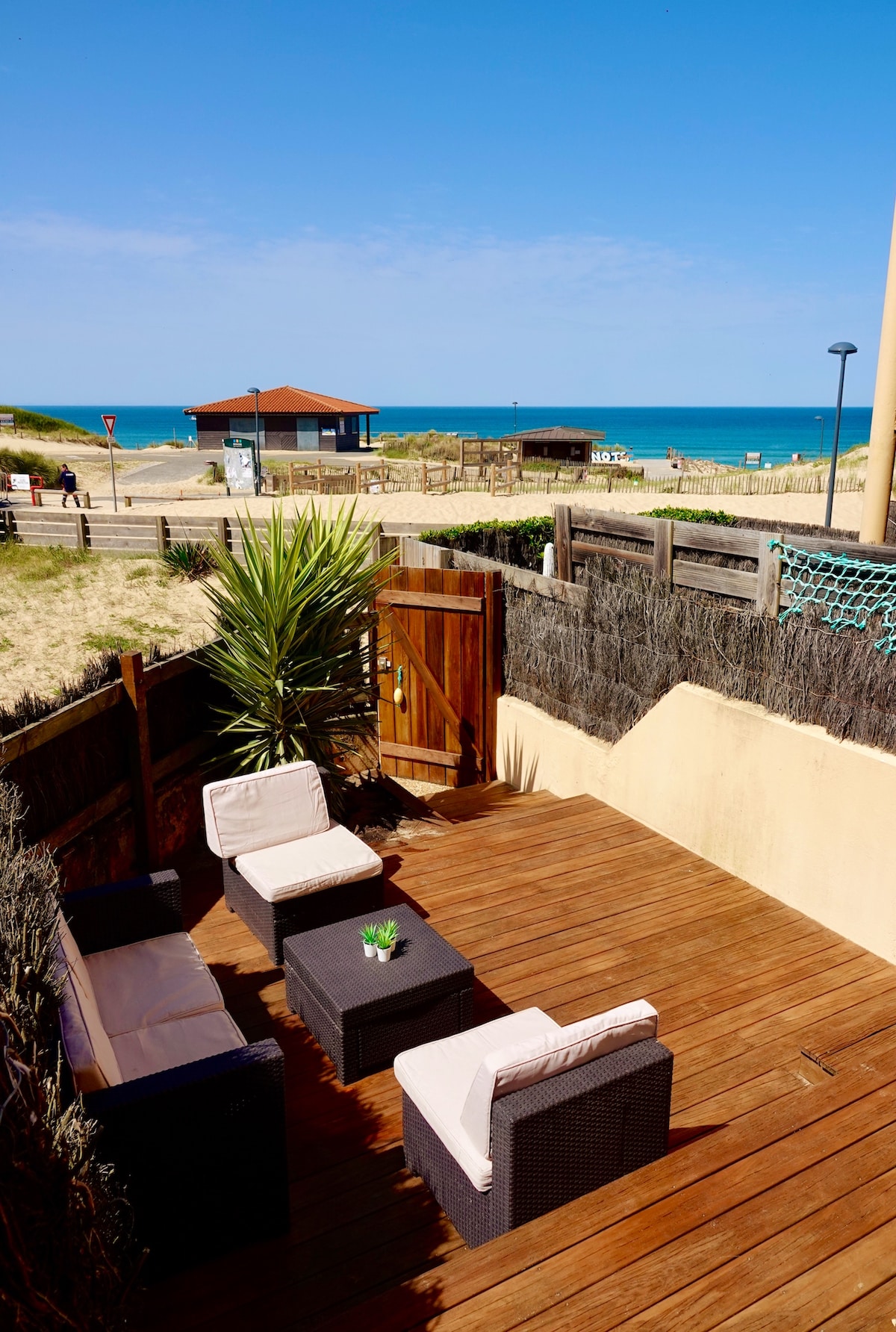 Mi alojamiento está situado en una pequeña residencia ( 12 apartamentos )situada en la duna en la planta baja del jardín ,con acceso directo a la playa Todo se puede hacer a pie restaurantes, club de playa, escuela de surf, bares de la vida nocturna Es ideal para parejas, viajeros solos y viajeros de negocios. Idealmente situado para la práctica del surf , es el punto de partida de paseos a pie o en bicicleta. Las puestas de sol le sorprenderán Playa vigilada