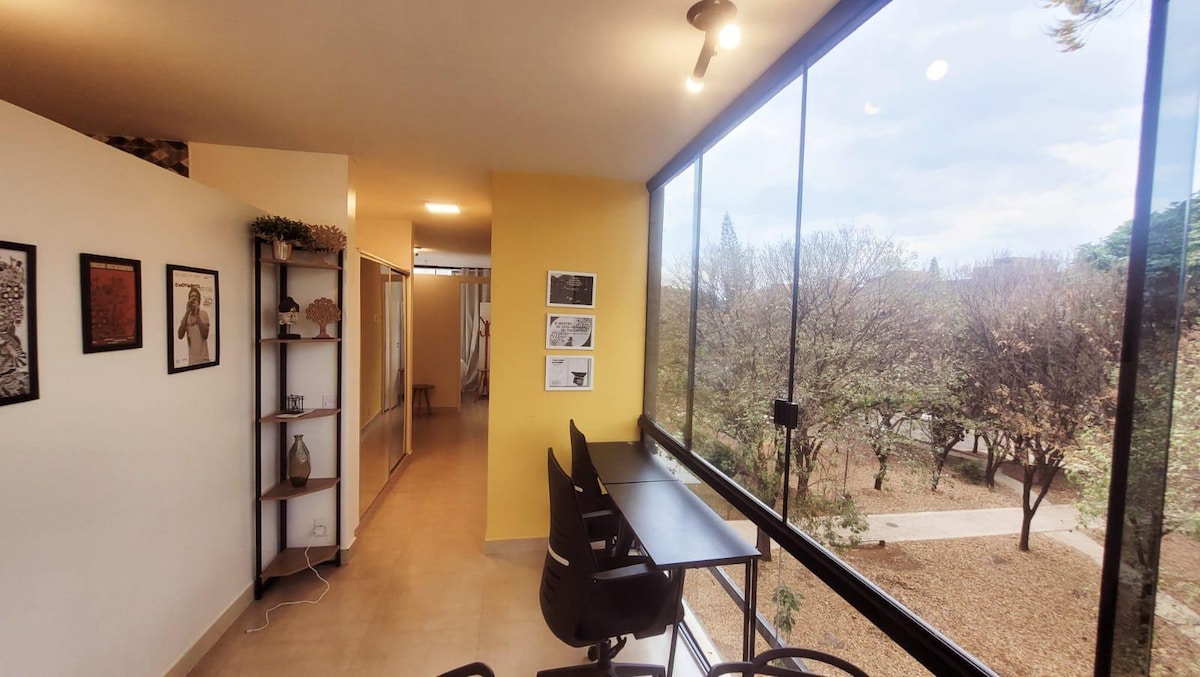 Un oasis en el centro de Brasilia, con naturaleza por todos lados, pero también cerca de tiendas (700 mts del Big Box en la cuadra 208 Norte y 750 mts del Pão de Açúcar en la cuadra 405 Norte), bares, cafes y servicios como farmacia y gasolinera, y la Universidad de Brasilia (UnB)