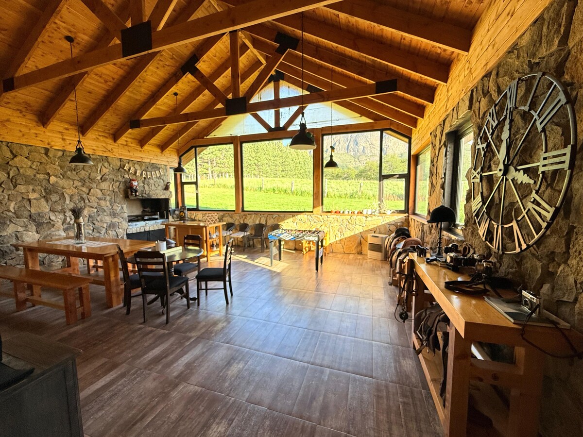 Disfruta de la sencillez de este alojamiento tranquilo, con una vista excepcional. Ponemos nuestro hogar a disposición con todos los accesorios para tener una grata estadía, somos amantes de los animales por lo que esperamos tengas buena recepción con estos, es un hogar sencillo acogedor con todo lo necesario. Es una casa pequeña clásica sureña