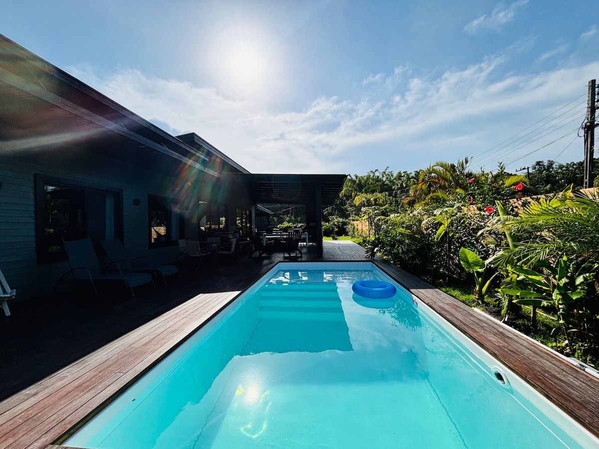 Casa en la selva tropical junto a un arroyo con piscina cerca de la playa