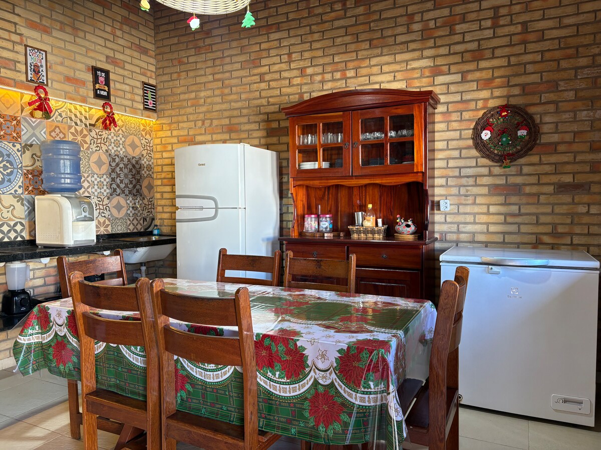 Gran lugar para descansar y relajarse. Acogedora casa dúplex, con 200m² de superficie construida, 900 metros de superficie total, amplio espacio exterior, piscina, terraza con barbacoa, jardines, césped y balcones. Se encuentra a menos de una cuadra de la playa, ubicación céntrica, cerca de los Hoteles Donana, Jangadeiro, Pousada do Sol y el mercado “Mangue Seco”. Tiene 4 dormitorios, 3 de los cuales son suites. Nota: ¡tiene Wifi! *Está a 50 minutos del aeropuerto Pinto Martins y a 60 minutos de Aldeota.