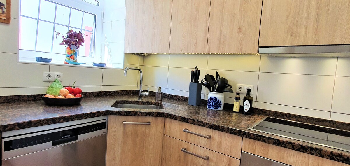 Nuestra casa privada se encuentra en un condominio tranquilo a solo 10 minutos a pie de las playas cercanas y del centro de Carvoeiro. Fue construida por arquitectos con la idea de asemejarla a las antiguas construcciones del Mediterráneo/norte de África. Mi familia renovó completamente el apartamento en julio de 2023 respetando su arquitectura y utilizando materiales locales. Algunos muebles fueron hechos a mano por mi padre utilizando materiales reciclados de la casa, como la madera de alta calidad para la mesa de comedor o el armario.
