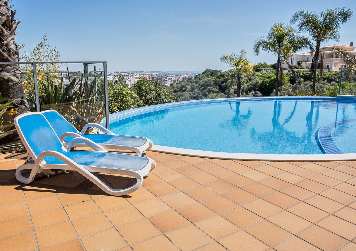 Departamento de lujo, ubicado en Condomínio Panorama, uno de los condominios más hermosos de la ciudad de Lagos. La vista sobre el mar, la ciudad y la montaña es magnífica. Tiene un gran balcón, con barbacoa, frente a la piscina al aire libre y la vista panorámica. El departamento es moderno y cómodo, comparable a un hotel. Solo tienes que bajar en el ascensor (sin salir del edificio) para acceder a la piscina interior climatizada, el gimnasio, la sauna y el baño turco. También tiene estacionamiento subterráneo.