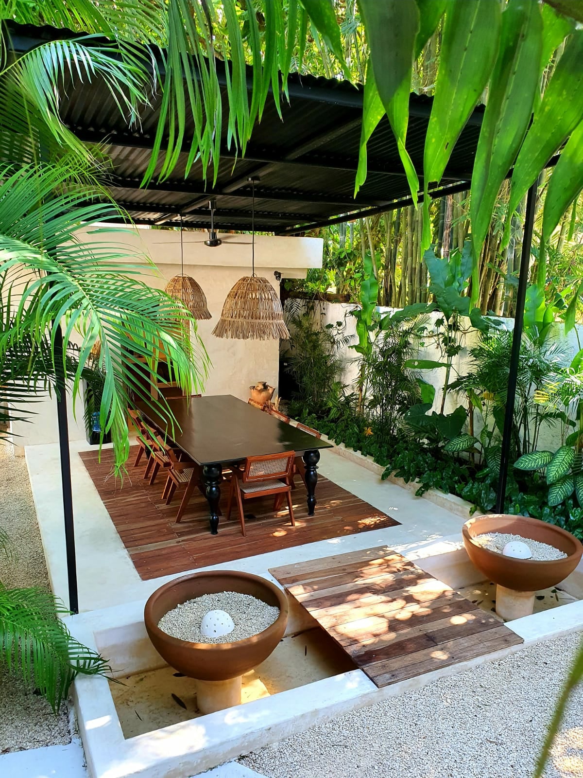 Relajado y rodeado de naturaleza, así es el espacio donde disfrutaras de un patio con palmeras, mientras le pides a Alexa que te ambiente con música de reggae para sentir el caribe mexicano. Además cerca de todo; como la bahía con su explanada a tan solo 5 cuadras, donde podrás disfrutar de las tradicionales marquesitas, o el aeropuerto y próximo Tren Maya a 5 minutos de distancia. Una estancia diseñada para que descanses y vivas una bonita experiencia.