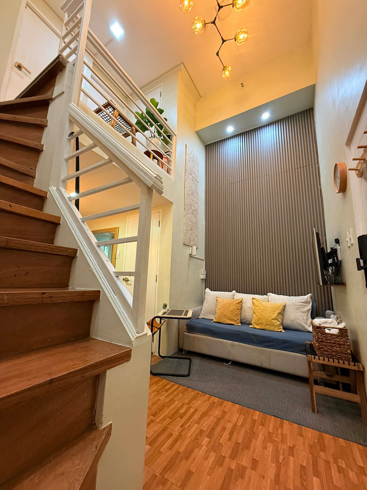 Relájate en este acogedor y tranquilo loft pequeño, situado en un barrio seguro de Mandaluyong con seguridad en el edificio las 24 horas, los 7 días de la semana. A solo 9 km (20-40 minutos dependiendo del tráfico) del aeropuerto NAIA y cerca de SM Megamall, Shangri-La y Powerplant Mall. Este lugar es perfecto para viajeros solitarios, parejas, nómadas digitales y personas que buscan comodidad, conveniencia y una estancia única en un loft. 5-10 minutos a la estación EDSA Shaw / MRT A poca distancia a pie de cafeterías, comida rápida, tiendas de comestibles y supermercados.